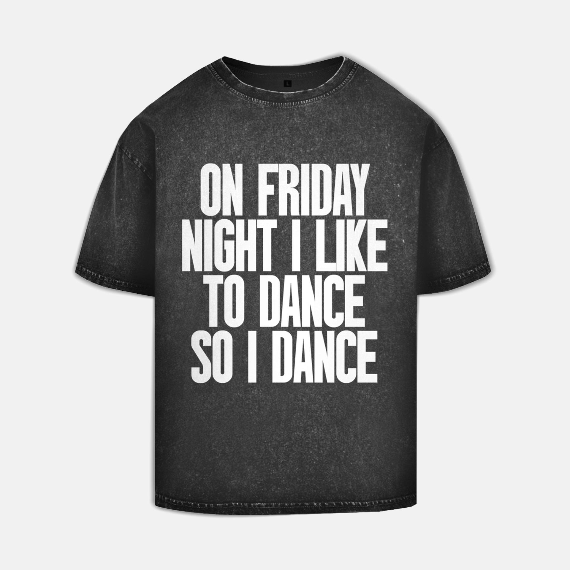 Ikonisches Oversize Washed Shirt mit kultigem Statement-Print "On Friday Night" aus 100% Baumwolle.